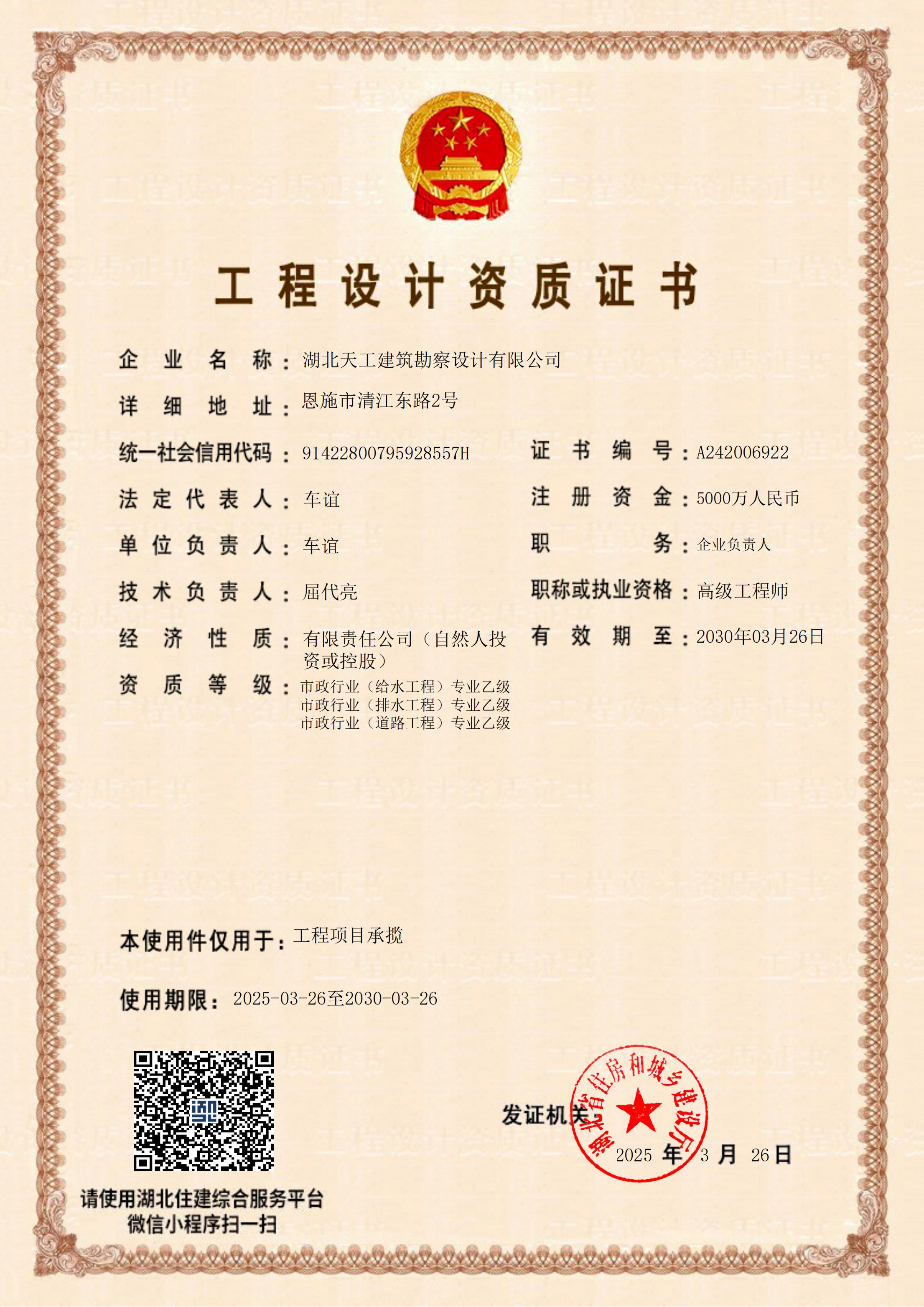 工程咨詢單位乙級資信證書