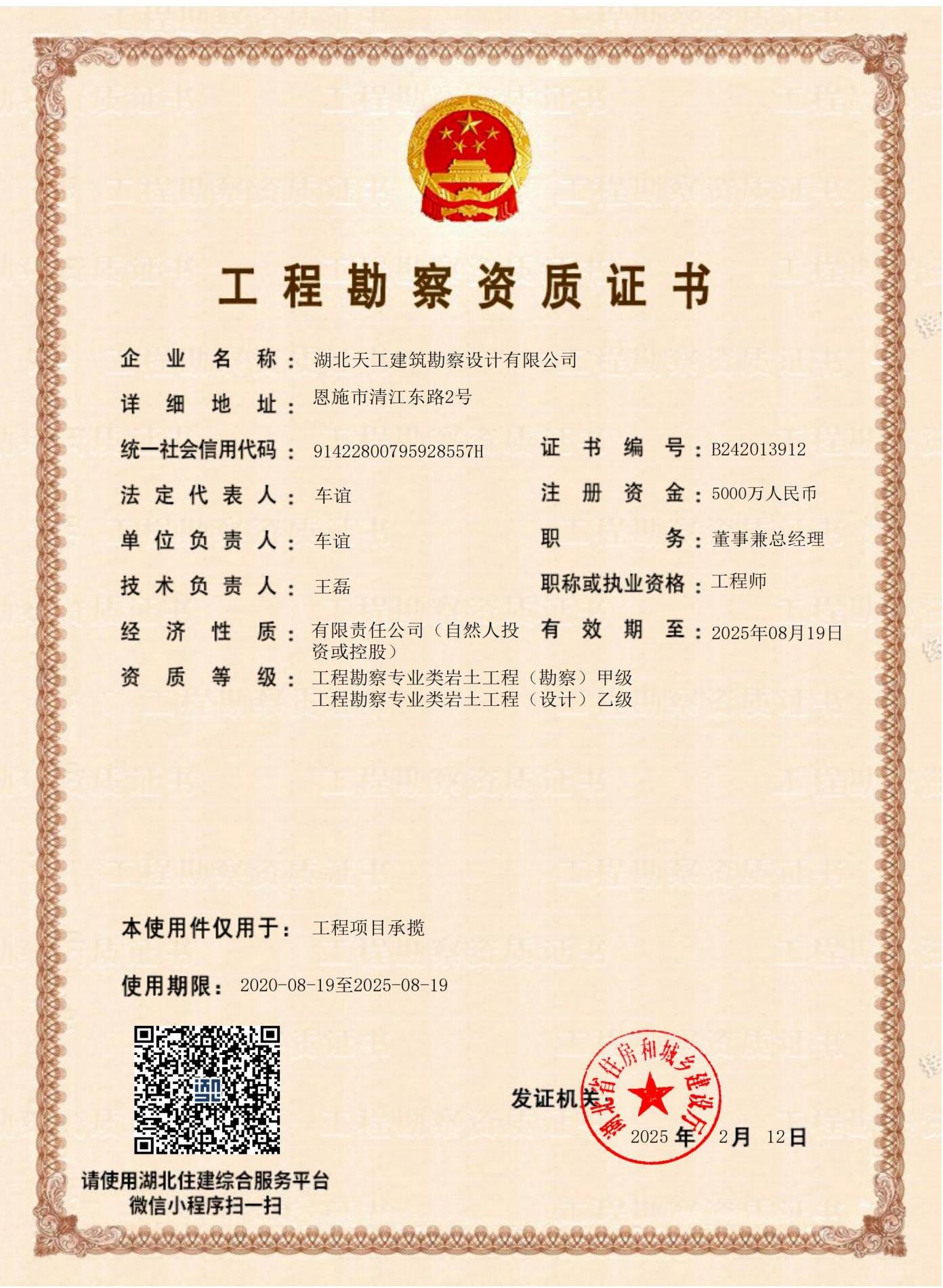 工程勘察資質證書
