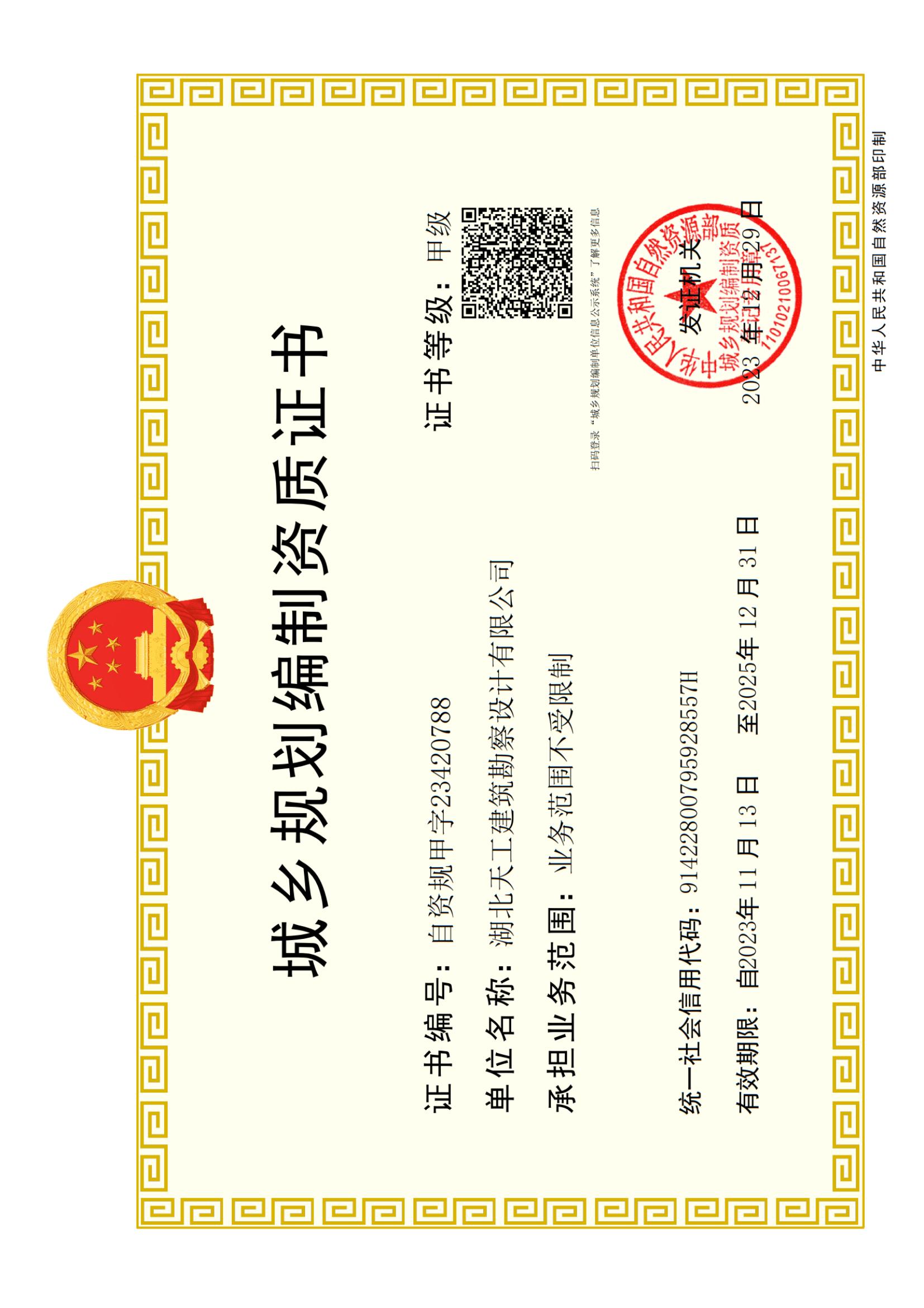 城鄉規劃編制資質證書